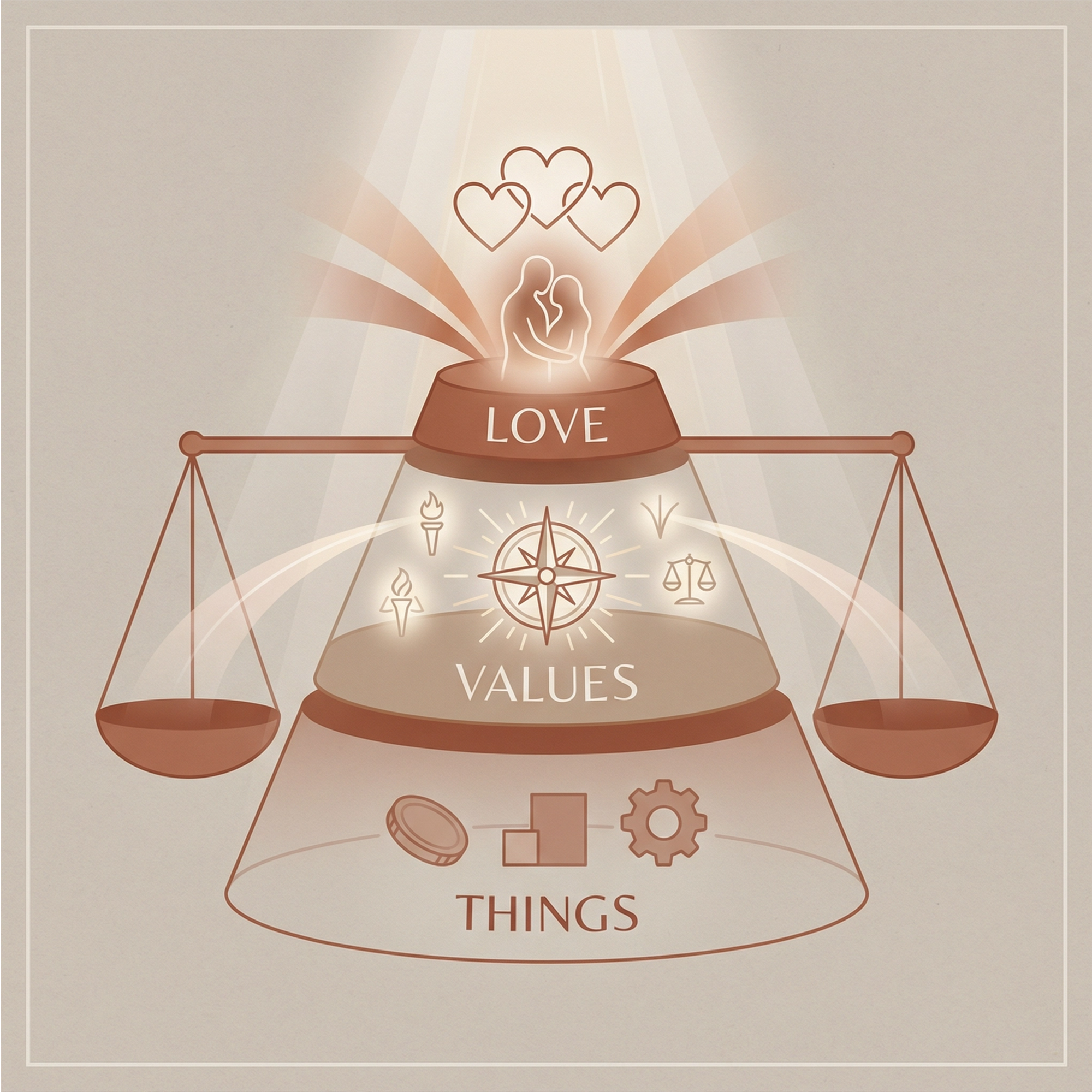 This distinction is not about rejecting the world. It is about seeing it clearly. When you know what you value most, every decision becomes simpler. You stop being reactive and start being intentional.